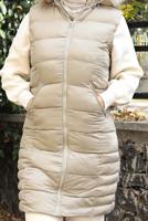 BEIGE ZIPPERED HOODED PUFFER VEST 4040