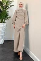 BEIGE COWL NECK EVENING DRESS T 5895-1