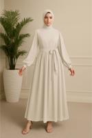 BEIGE BELTED CHIFFON DRESS T 7126
