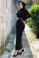 BLACK CORDUROY KNITWEAR DRESS T 0014