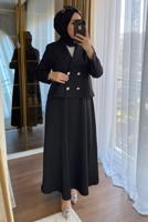 BLACK DOUBLE BREASTED SKIRTED SUIT T 1252