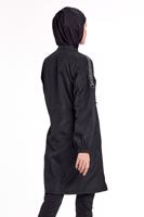 BLACK SMOCKING WAIST ZIPPERED HIJAB SWIMSUIT 1266