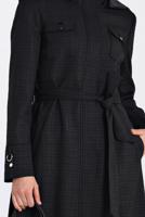 Model's Height: 178 cm, bust 85 cm, waist 63 cm, hips 92 cm. Material: 63% Polyester, 33% Viscose, 4% Elastane. Lined. Item's height; 140 cm. Model's size: 38. Fabric: Winter Cloth. Accessories doesn't belong to the item. Hood unremovable.