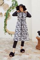 BLACK LEAF PRINTED ZIPPERED HIJAB SWIMSUIT 2900