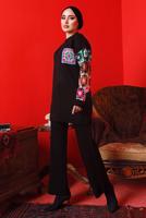 BLACK PATTERNED KNITWEAR PANTS SUIT 2992