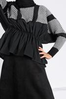 Model Details: Height: 1.75 Bust: 85 Waist: 63 Hip: 92. Fabric Details: 70% acrylic 30% wool Product Length: 61 cm Unlined. Smocking waist. Shirt detail is combined. Size on Model: one-size (38-42). Made of winter cloth. Accessories are not included in price. Product colors may vary on some products due to differences in shooting light or color settings on monitor/phone screens.