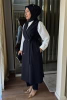 BLACK BELTED PANTS SUIT WITH VEST T 6135