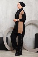 Model Details: Height: 1.75 Bust: 85 Waist: 63 Hip: 92. Fabric Details: 100% acrylic Product Length: Tunic: 84 cm Pants: 104 cm. Unlined. Turtleneck. Pants' waist is elastic and it is pocketless. Size on Model: one-size (38-44). Made of knitwear. Accessories are not included in price. Product colors may vary on some products due to differences in shooting light or color settings on monitor/phone screens.