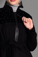 BLACK BEADED MANDARIN COLLAR TRENCH-COAT 9715