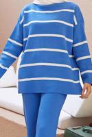 BLUE STRIPE DETAIL 2-PIECE KNITWEAR PANTS SUIT 1204