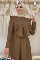 Model Details: Height: 1.75 Bust: 85 Waist: 63 Hip: 92. Fabric Details: 95% polyester 5% lycra Product Information: Length: 144 cm Chest Width: 41 cm Sleeve Length: 56 cm Overalls' Cuffs Width: 34 cm Unlined. Zippered in the back. The back and upper part of the product is ruffled. Straight model. The product is made of lycra so there may be 4 cm difference in length and width between sizes. Size on Model: 38 The other sizes of product: 40-42-44-46-48 Made of summer cloth. Accessories are not included in price. Product colors may vary on some products due to differences in shooting light or color settings on monitor/phone screens.