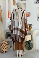 BROWN PATTERNED KNITWEAR PONCHO T 31021