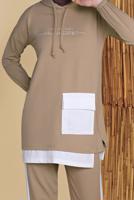 BROWN POCKET DETAIL 2-PIECE TRACKSUIT SET WITH PANTS 6555