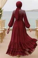 CLARET RED PEARL DETAILED EVENING DRESS T 0812