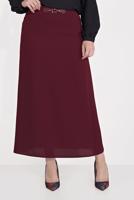 CLARET RED ALVİNA LEATHER DETAIL SKIRT 60084