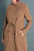 Model's Height: 175 cm, bust 85 cm, waist 63 cm, hips 92 cm. Material: 71% Polyester, 24% Viscose, 5% Elastane. Lined. Item's height; 140 cm. Model's size: 38. Fabric: Wool. Accessories doesn't belong to the item. The item has a smocked belt on waist.
