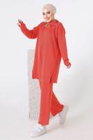 Model Details: Height: 1.75 Bust: 85 Waist: 63 Hip: 92. Fabric Details: 100% acrylic Product Length: Tunic: front: 85 cm back: 89 cm Pants: 98 cm. Unlined. Chain detail is included and combined. Size on Model: one-size (38-46). Made of winter cloth. Accessories are not included in price. Product colors may vary on some products due to differences in shooting light or color settings on monitor/phone screens.