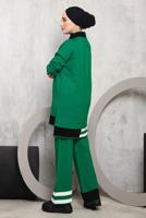 GREEN KNITWEAR PANTS SUIT WITH STRIPED HEM 1292
