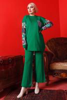 GREEN PATTERNED KNITWEAR PANTS SUIT 2992