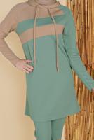 GREEN 2-COLOR HOODED TRACKSUIT SET 7555
