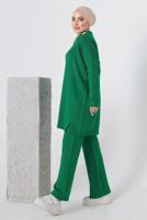 GREEN CHAIN PATTERN KNITWEAR PANTS SUIT 8592-1