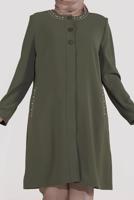 KHAKI ALVİNA EMBROIDERY DETAIL BUTTONED TRENCH COAT T 10234