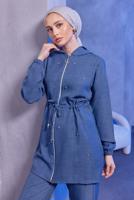 Tunic: Long sleeve, unlined, hooded, elastic waist, zippered, smocking waist, gem detail.
