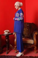 NAVY BLUE PATTERNED KNITWEAR PANTS SUIT 2992