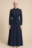 NAVY BLUE BELTED SHIRT DRESS T 3663
