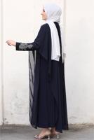 NAVY BLUE EVENING DRESS WITH CAPE T 4031