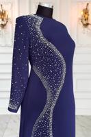 NAVY BLUE PEARL DETAILED EVENING DRESS T 7063