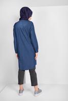 Model's Height: 178 cm, bust 85 cm, waist 63 cm, hips 92 cm. Material: 98% Cotton, 2% Lycra. Unlined. Item's height; 89 cm. Model's size: 38. Fabric: Denim. Accessories don't belong to the item.