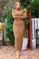 Model Details: Height: 1.75 Bust: 85 Waist: 63 Hip: 92. Fabric Details: 90% acrylic 10% polyamide Product Length: 137 cm. Unlined. Turtleneck. Size on Model: one-size (36-42) Made of knitwear cloth. Accessories are not included in price. Product colors may vary on some products due to differences in shooting light or color settings on monitor/phone screens.