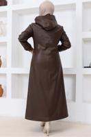 BRUN VESTE À CAPUCHE EN SIMILI CUIR T 0521