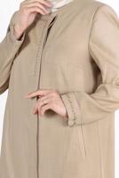 Détails du mannequin: Hauteur: 1,74 Poitrine: 98 Taille: 82 Hanche: 110. Informations sur le tissu: 100% polyester Longueur du produit : 146 cm Le produit est non doublé. Le devant du produit doit être caché du cou. Les épaules du produit sont rembourrées. Taille sur mannequin : 46 Tissu du produit : il est fabriqué en tissu d'été. Les accessoires ne sont pas inclus dans le produit.Les couleurs du produit peuvent varier sur certains produits en raison de différences dans la lumière de prise de vue ou les paramètres de couleur sur les écrans de moniteur/téléphone.