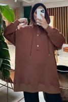 BRUN TUNIQUE À CAPUCHE À BOUTONS-PRESSION 9597