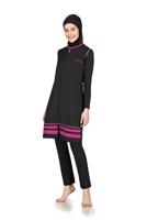 NOIR MAILLOT DE BAIN HIJAB ZIPPÉ À RAYURES 0243
