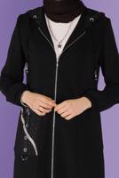 NOIR ALVINA TRENCH-COAT DÉTAILLÉ EN DENTELLE AVEC ACCESSOIRE EN MÉTAL T 10395