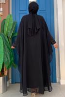 Détails du mannequin: Hauteur: 1,75 Poitrine: 85 Taille: 63 Hanche: 92. Informations sur le tissu: 95% polyester 5% lycra Longueur du produit : Robe: 126 cm Manche: 64 cm Largeur: 108 cm Cape Longueur: 143 cm Manche: 75 cm Non doublé. La robe est boutonnée dans le dos. Cape avec manche chauve-souris. Détail de gemme. Tissu en mousseline de soie. La robe intérieure est un détail droit à manches longues. Robe intérieure en lycra. Taille sur mannequin : 1 Tissu du produit : il est fabriqué en tissu d'été. Les accessoires ne sont pas inclus dans le produit.Les couleurs du produit peuvent varier sur certains produits en raison de différences dans la lumière de prise de vue ou les paramètres de couleur sur les écrans de moniteur/téléphone.