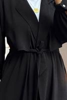 Manches longues, sans doublure, boutonnage croisé, ceinturé, détail poche, boutonné.