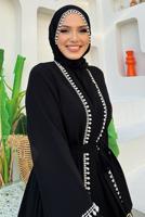 Abaya: Manches longues, non doublée, avec perles, ceinture, mousseline.