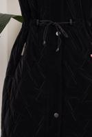 Doublé, capuche amovible, fermeture éclair, boutonnée, détail de poche, taille élastique.