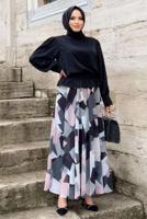 NOIR ENSEMBLE JUPE À MOTIF À LA TAILLE SMOCKANTE T 8928