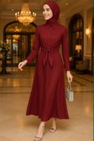 ROUGE BORDEAUX ROBE CHEMISE CEINTURÉE T 3663