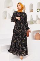NOIR ROBE EN MOUSSELINE FLORAL AVEC CEINTURE 50051
