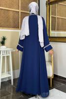 LACİVERT KUŞAKLI ABAYA TAKIM T 3948