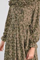 BEJ-HAKİ BELİ LASTİKLİ YAPRAK DESENLİ ELBİSE 93001 DETAYLARI