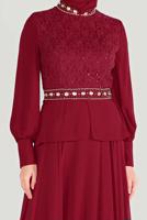 A.BORDO ALVİNA TAŞLI PUL PAYETLİ ABİYE ELBİSE 5948 DETAYLARI