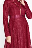 BORDO DANTELLİ KUŞAKLI BİSİKLET YAKA ELBİSE 6665 DETAYLARI