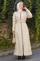 EKRU KAPÜŞONLU ŞİŞME MANTO T 066